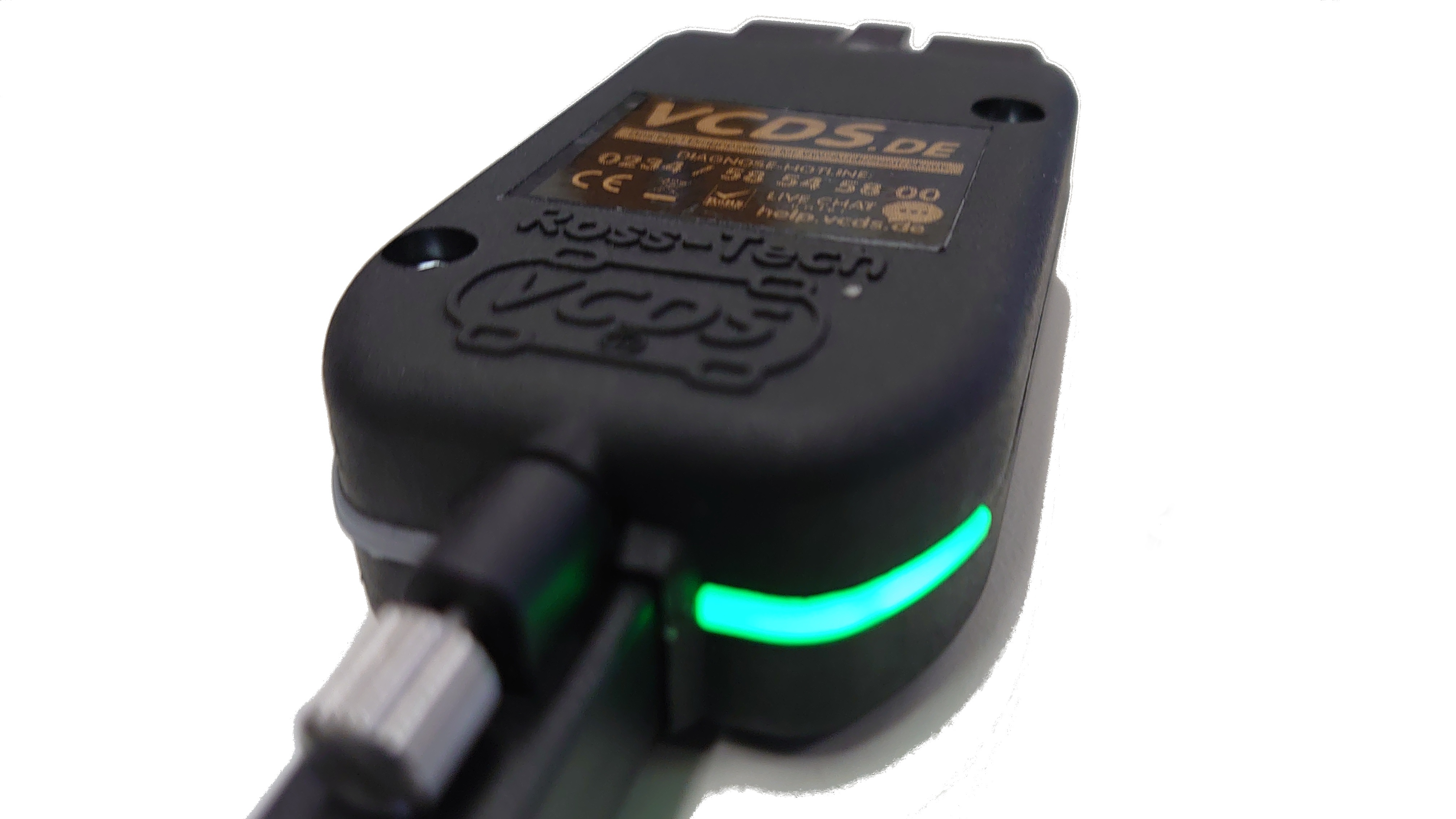 Die Kombination aus der abwechselnd blinkenden roten bzw grünen LED zeigt eine aktive Kommunikation und Datenübertragung zwischen Fahrzeug und Interface.